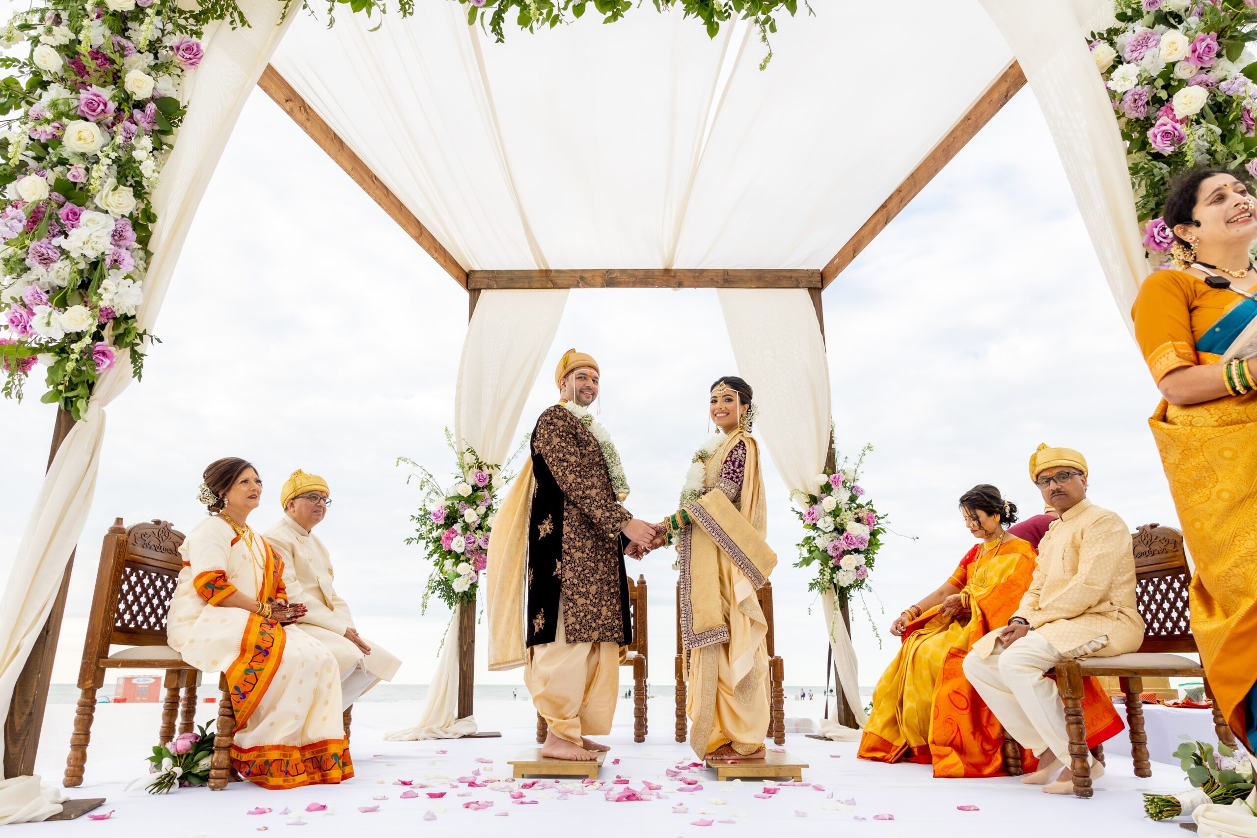 As the celebrations came alive with Florida’s tropical beauty, vibrant colors, music, and tradition, their bond shone at the center — a reminder that true love is built not just on grand gestures, but on shared smiles, understanding, and devotion. The joyful atmosphere, heartfelt rituals, and radiant energy made Margi and Krunal’s wedding a timeless experience — one that celebrated love in its purest form.