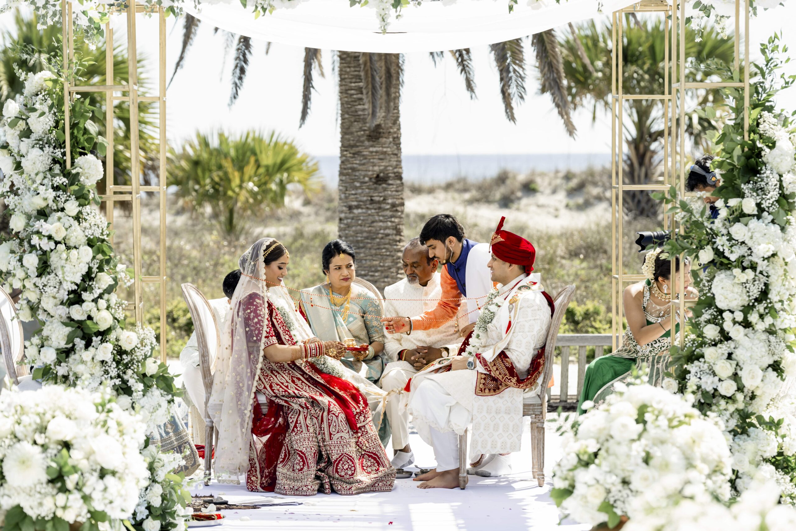 As the music, laughter, and rituals filled the ocean breeze, the camera beautifully captured the fusion of modern elegance with traditional Indian wedding rituals. Dhruvi’s radiant presence and Jay’s calm strength stood at the heart of the celebration, while family and friends surrounded them with love and joy.
