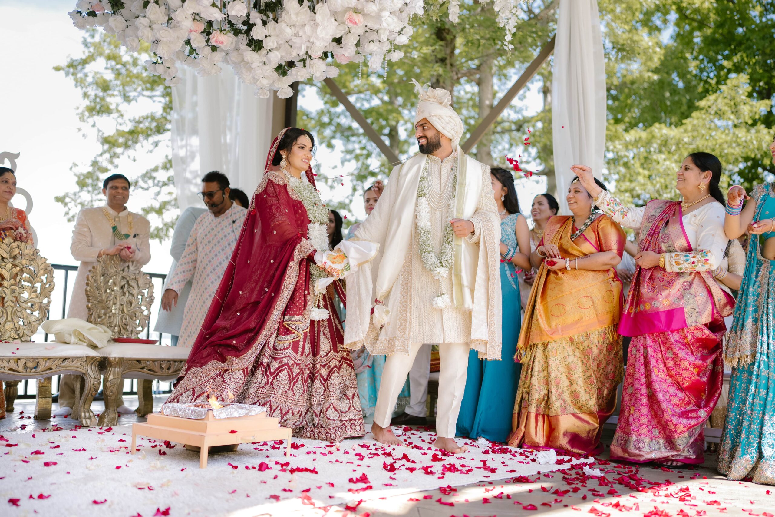 As the celebrations came alive with music, vibrant colors, and tradition, their bond shone at the center — a reminder that true love is built not just on grand gestures, but on shared smiles, understanding, and devotion. The joyful atmosphere, heartfelt rituals, and bright cultural energy made Karishma and Nishang’s Georgia wedding a timeless experience — one that celebrated love in its purest form.